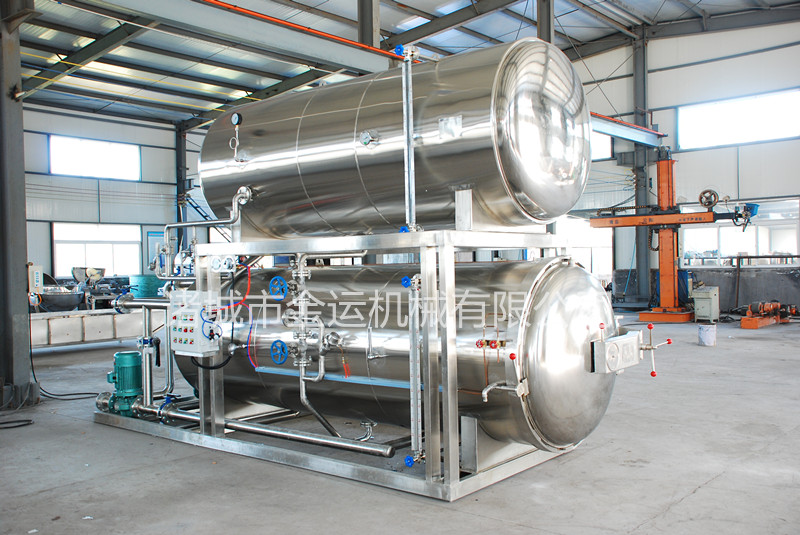 一、杀菌锅概述: 用最简单的术语,杀菌锅是一只密闭的、加压的加热器,用于加热密封在容器内的食品。对密封包装在容器内需商业无菌杀菌的食品,可以使用多种不同的杀菌锅系统。 杀菌锅系统有着一些相同的特性: --系统是加压的,传递温度大大高于沸水。 --系统使用某种介质(称为加热介质或杀菌介质)作为向产品传递热量的工具。用于锅内的介质包括纯蒸汽、热水(容器全部浸没在水中、水喷雾或水喷淋)和蒸汽/空气混合物。 --有些系统在杀菌和冷却过程中使用过压,以保持容器的完整性和平衡抵消罐内的 压力。这样做是必要的,因为有些包装容器对内部压力的忍受力有限。过压杀菌容器的某些实例还有带热封盖的或双金属接缝罐端的半刚性塑料容器、软包袋袋、金属盘、纸板容器和玻璃罐。术语“过压”系指施加于杀菌锅的,超过在某一给定温度情况下由加热介质所施加的压力。蒸汽杀菌锅中,在250℉时的压力大约是15psig(磅/平方英寸),任何施加于杀菌锅的超过该15psig的压力都称之为过压。提供过压,例如25-35psig的杀菌系统可以在更高的温度下操作。 二、杀菌锅操作说明 一般实验室罐头作加热杀菌处理时都采用本形式的历史式杀菌锅,本设备通过蒸发水蒸气,在锅内造成高压环境实现杀菌。在杀菌时,由于加热使罐头温度升高,罐头内压力会超过罐外(在锅内)的压力。因此,为了避免杀菌时玻璃瓶罐内增压而跳盖,对马口铁罐两端面凸出,必须施加反压力,特别是对需要较高杀菌温度的肉类罐头更就如此。 使用蒸汽压力杀菌锅时,在杀菌过程中,要将水漫过底部,并且在需杀菌得物体放入国内后需将盖子旋紧,应注意最初排气,进而泄汽,使蒸汽流通。亦可每隔15-20分钟放气一次,促进热交换。总之必须满足杀菌条件的规定,按一定程序进行,杀菌温度的高低,杀菌压力的大小,杀菌时间的长短和操作方法等均由罐头产品杀菌工艺作出具体规定。 三、杀菌锅使用、维护与保养 1、本设备设计、制造所遵循的规范标准及检验依据:《钢制压力容器(GB150-1998)》与《压力容器安全技术监察规程(99版)》进行制造、试验和验收;焊接按《钢制压力容器焊接规程(JB/T4709-2000)》进行;射线探伤按(JB4730-94)之III级进行。 2、用户应根据本单位的生产工艺杀菌条件和本杀菌锅的技术性能制订杀菌锅安全操作规程,并严格执行。杀菌锅安全操作规程至少应包括: (1)杀菌锅的操作工艺指标及最高工作压力,最高工作温度。 (2)杀菌锅的操作方法与程序和注意事项。 (3)生产运行中应重点检查项目和部位,以及运行中可能出现的异常现象和防止措施。 (4)设备停用时的保养方法。 3、本设备严禁超过设计压力、温度运行。 4、使用杀菌锅的操作人员应经培训考试合格,应严格遵守安全操作规程和岗位责任制;发现不正常现象应及时处理。 5、杀菌锅装设有安全阀、压力表、温度计等附件,要保持安全,齐全、灵敏、可靠。在使用过程中应加维护与定期校验。本设备的安全阀启跳压力等于设计压力,应保持灵敏、可靠,应防止随意调整。压力表、温度计精度等级均为1.5级,公差允许内的差异是正常的。无铅封压力表不得使用,压力表指示失灵,刻度不清,表盘破裂,泄压后指针不回零位,铅封损坏等情况均应立即更换。温度计应进行定期检验,使用前应以标准温度计校验正,以后每年核正一次,凡水银柱断裂和与标准温度相差超过0.5℃则应送修或更换。 6、杀菌锅应定期检查,每半年至少进行一次外部检查,每一年至少进行一次全面检验,检验前的准备工作和检验项目,均按“规程”和有关规定进行,检验报告存档备案。 7、在使用过程中应经常对斜面自锁楔块、滚轮、锅耳、转环法兰等滑动与滚动接触部位涂抹滑脂和机油,以保证磨擦面处于润滑状态。 8、锅身法兰面上的密封圈若老化,缺损和磨损过大时,应及时更换,以便保证密封,防止泄漏。 9、设备停用时,应将杀菌锅和锅盖的内外表面清洗干净。外露加工表面刷以防锈漆,安全检测控制仪表予以罩封保护。