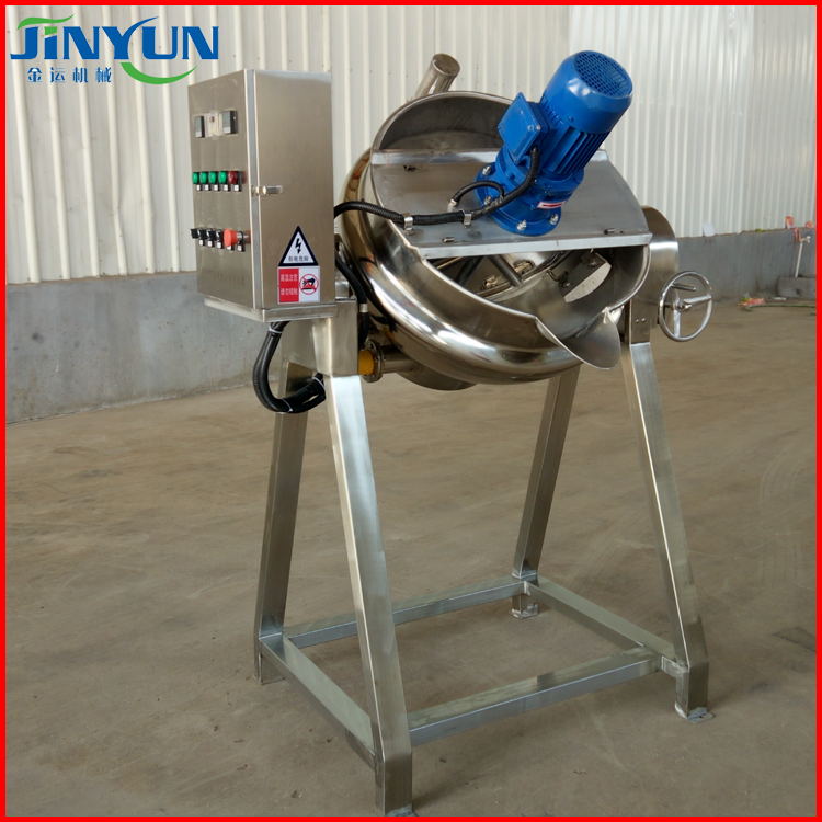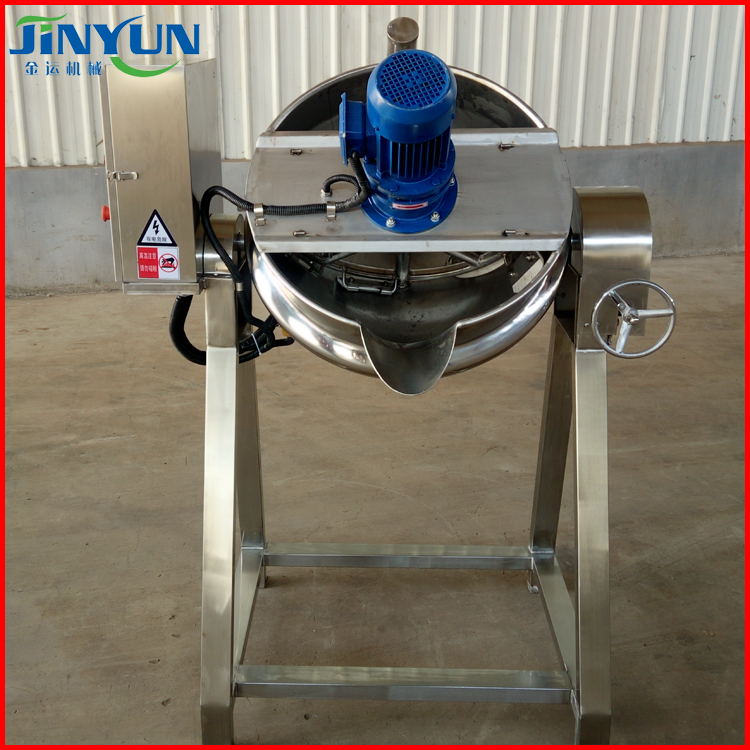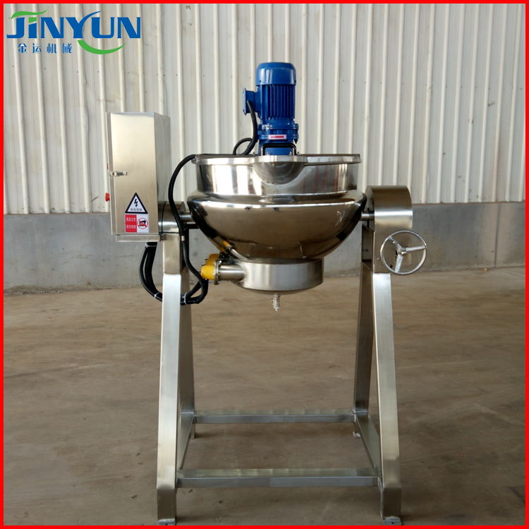 夹层锅又名蒸汽锅、蒸煮锅、夹层蒸汽锅。通常由锅体和支脚组成。锅体是由内外球形锅体组成的双层结构形式,中间夹层通入蒸汽加热。有固定式、可倾式、搅拌式等样式。夹层锅具有受热面积大、热效率高、加热均匀、液料沸腾时间短、加热温度容易控制、外型美观、安装容易、操作方便、安全可靠等特点。夹层锅广泛应用于各类食品的加工,也可用于大型餐厅或食堂熬汤、烧菜、炖肉、熬粥等,是食品加工提高质量、缩短时间、改善劳动条件的良好设备。夹层锅可电加热、蒸汽加热、燃气加热等方式。可倾式、立式夹层锅。导热油夹层锅。 带搅拌、刮底搅拌夹层锅。食堂熬粥、炒菜锅。夹层锅可用于食品加工,卤肉、入味、熬制、化糖、蒸煮、果酱、糕点等。夹层锅是不锈钢制作,专业生产,您用的放心。可倾式搅拌夹层锅技术参数(可根据客户实际需要定做):